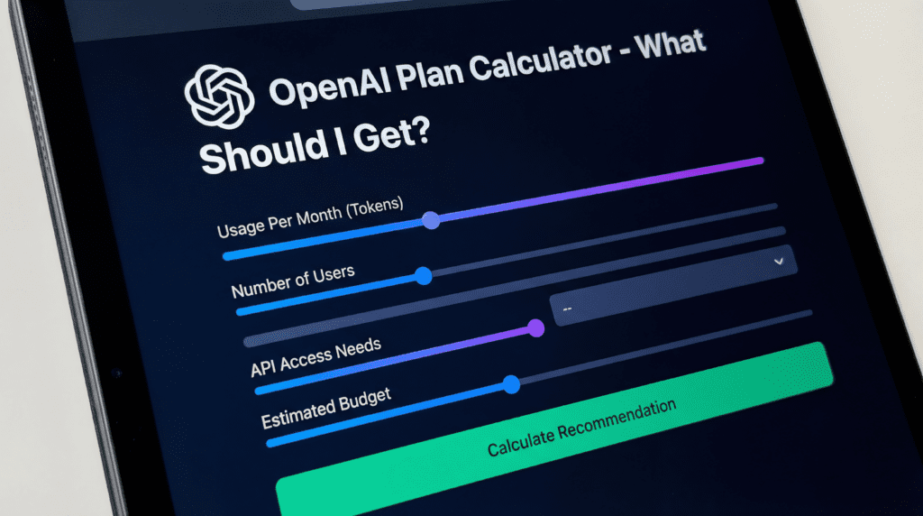 That’s why we built this calculator (above). It’s a free, independent tool — not affiliated with OpenAI in any way — that asks you seven straightforward questions about how you actually use ChatGPT and tells you the cheapest plan that fully covers your workflow. No upselling, no affiliate links, no “just get Pro to be safe.” You answer the questions, and it gives you a detailed, personalized recommendation with a confidence level, a clear explanation of why, and even a cheaper fallback option if you want to start conservative.