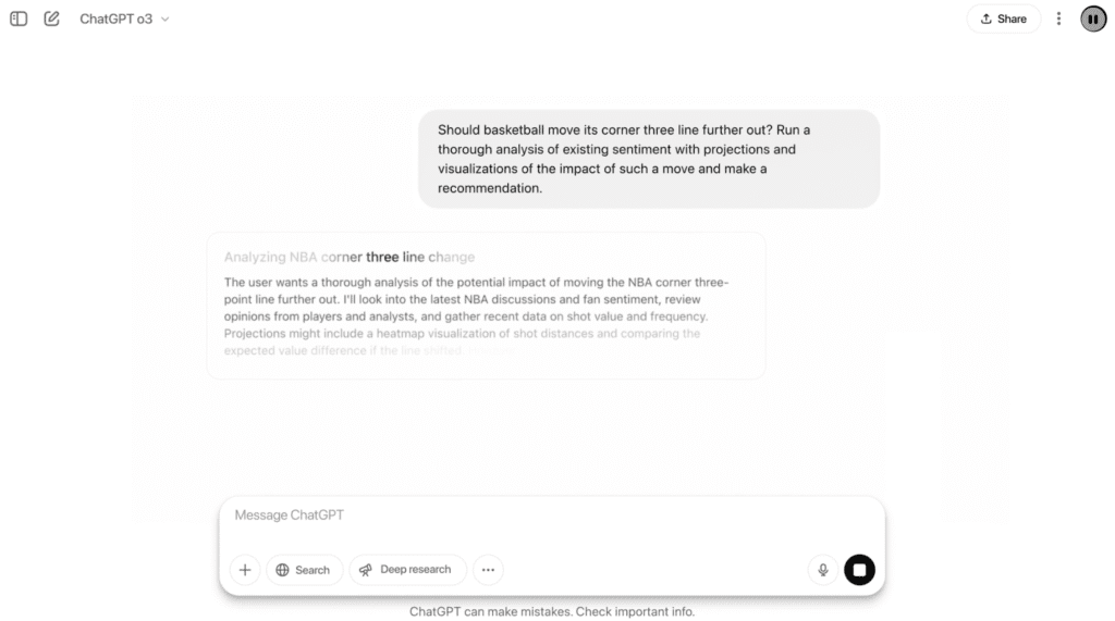 This multimodal capability opens up use cases like: debugging UI layouts from screenshots, analyzing diagrams or charts (yes, you can ask o3 to look at a graph image and summarize insights – it’s very good at that), helping blind users by describing photos, or solving visual puzzles. It’s truly impressive to see a model reason “across modalities” – e.g., combine a diagram’s info with a text question. OpenAI’s demo showed ChatGPT literally thinking with images in its chain-of-thought, meaning it treated the image as part of the problem to solve, not just something to caption.