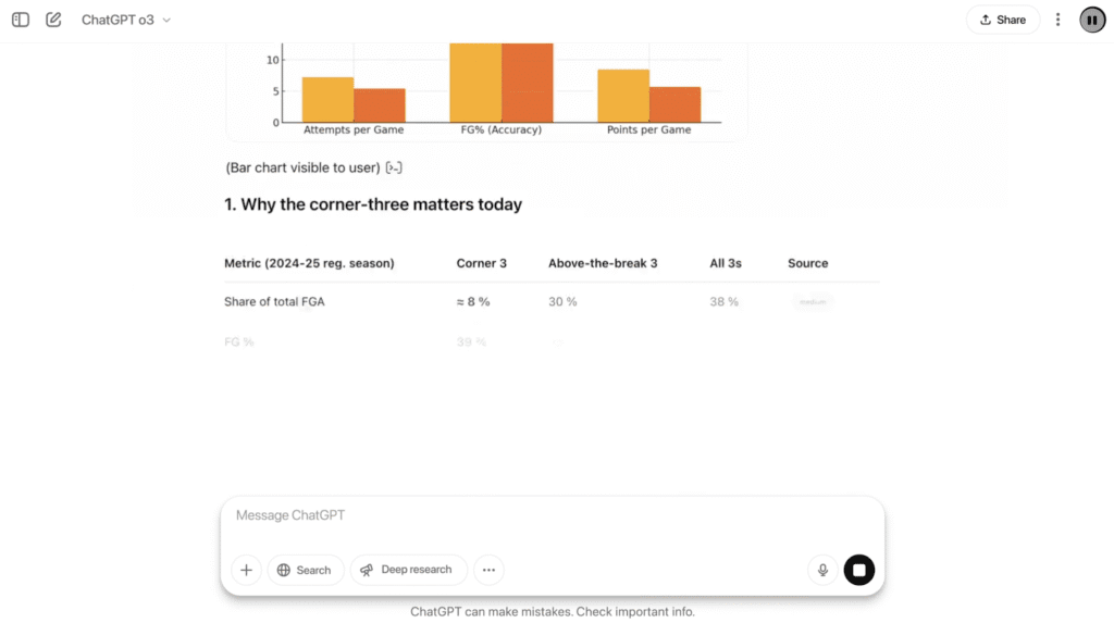 - Deep Research & Complex Problem Solving: If you’re doing research – say, analyzing scientific papers, proving a theorem, or exploring a new engineering design – o3 is your best bet. It can handle highly complex, multi-step reasoning and come up with novel solutions and hypotheses. Early users noted o3’s strength in generating and evaluating ideas in fields like biology, math, and engineering. It’s like having a PhD-level assistant who won’t get tired. This makes o3 ideal for R&D departments, scientific analysis, or strategic business problems that require critical thinking.