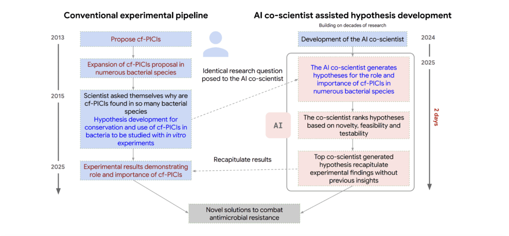 For a final demonstration, the research team gave the Co-Scientist a puzzle with a hidden answer. Bacterial evolution and antibiotic resistance often hinge on horizontal gene transfer. A novel mechanism involving capsid-forming phage-inducible chromosomal islands (cf-PICIs) had been discovered experimentally by the group but not yet published or made public in any forum. Could the Co-Scientist recapitulate this discovery solely from the patterns in available data and known phenomena?